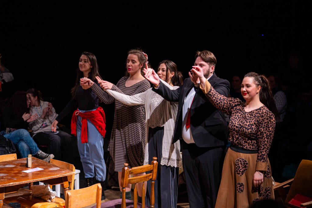 Violence in the performance occasionally emerges organically from the situation and feels realistic, but at times it becomes exaggerated in an effort to reach a climax. A similar issue appears in the segment depicting an acting entrance exam, which lacks a clear purpose and does not influence the course of the narrative. Four Sisters is ultimately too ambitious for an ensemble still searching for a stable artistic voice. A clearer text, more precise dramaturgy, and a reduction of directorial demands would be key steps toward achieving a more coherent and impactful performance.
